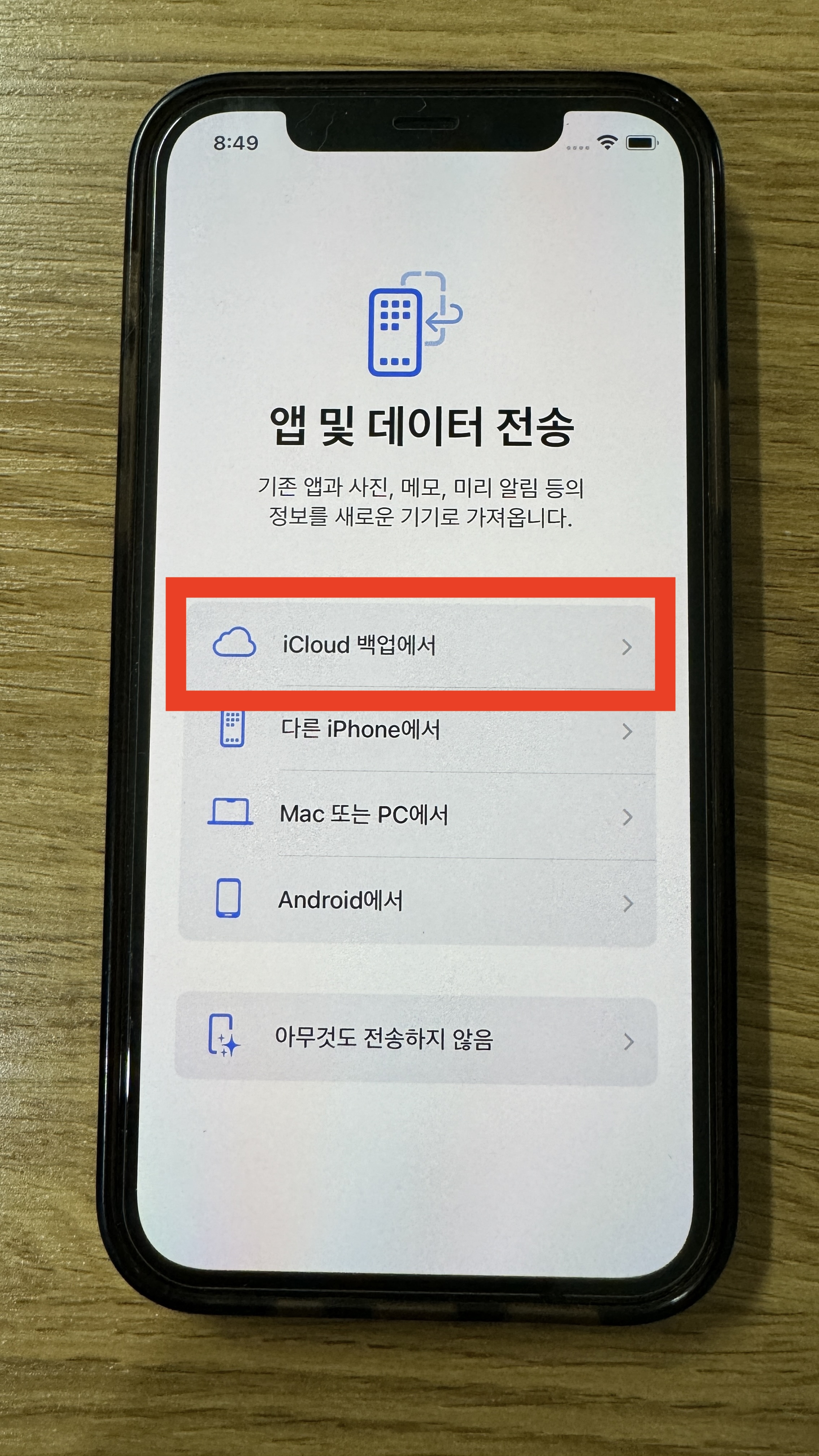 그렇다면 새로운 기기에서 아이클라우드에서 백업을 하면 되는데요.